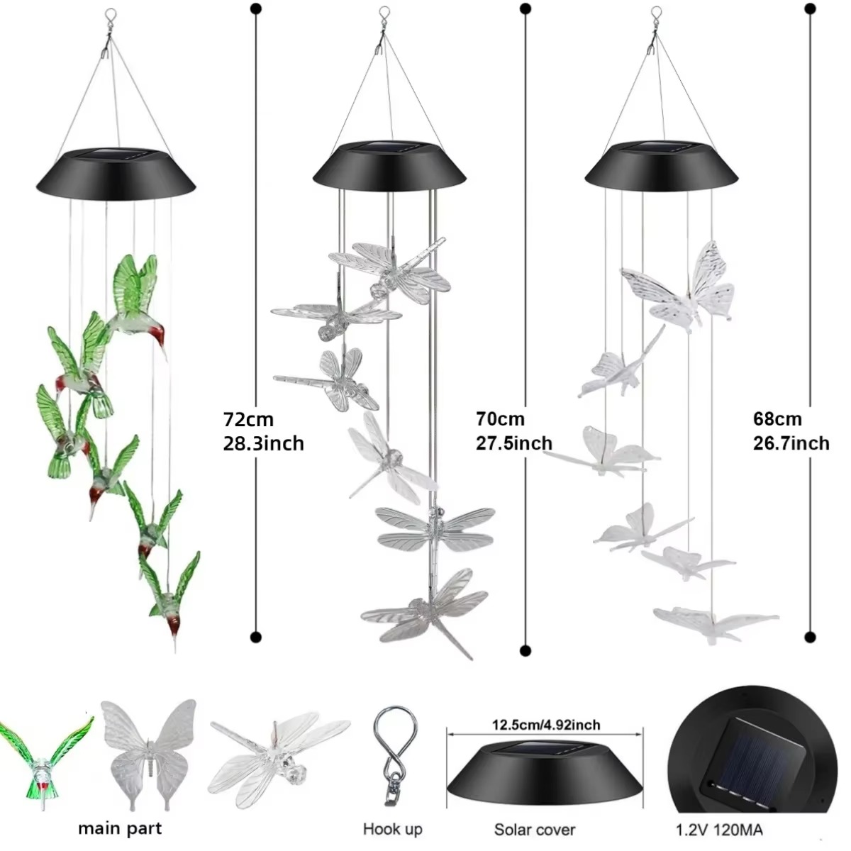 🦋 Elegant Hanging Designs – Available in charming styles such as hummingbirds, dragonflies, butterflies, and decorative glowing balls.